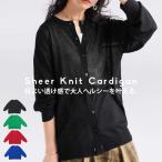 シアー ニットカーディガン レディース クルーネック 長袖・新色登場 100ptメール便可