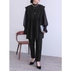 セットアップ quaranciel:「洗濯機可能」ギャザー シャツ & イージー パンツ セットアップ レディース