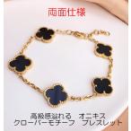 ブレスレット 四葉クローバー リバーシブル 両面 ブラック ホワイト レッド 人気 ギフト プレゼント ラッキーアクセサリー ヴァンクリ風 直径1.4cm