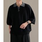 セーター ニット バイカラールーズ半袖ニットポロ メンズ レディース