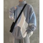セーター ニット 「25年新色ネイビー追加」ふわもち ジオメトリック タートルネック ビッグニットセーター メンズ レディース