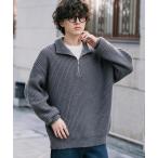 セーター ニット 新色追加 オーバーサイズ畦編みハーフジップニットセーター メンズ レディース