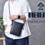サコッシュ バッグ メンズ レディース 牛床革 ショルダーバッグ ポシェット 撥水 レザー 薄型 軽量 横型 斜めがけ スリム 軽い 薄い ミニポシェット