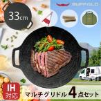 【通常9,900⇒4,980円】安心Buffaroキャンプメーカーのマルチグリドル お得4点セット(33cm1枚+木製取手+専用収納カバン+グリルパン専用トング)