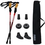 トレッキングポール 2本セット 折りたたみ ストック 軽量 伸縮 アウトドア ハイキング レッド ((S