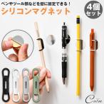 シリコンマグネット 4個セット ペンホルダー ペン立て 壁 貼り付け 固定 壁掛け コンパクト ペン ツール ケーブル 器具 整理 整頓 鉄板プレート付き