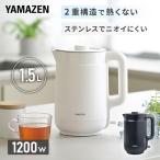 電気ケトル ケトル 電気 電気ポット 小型 おしゃれ 湯沸かしポット 山善 1.5L 熱くならない 本体二重構造 空焚き防止 YKPA-1215 1200W