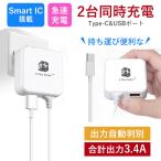 USB充電器 タイプc 充電器 携帯充電器 3.4A 急速充電 USB Type-Cケーブル一体型 Smart IC搭載 ACアダプター 折りたたみ式プラグ