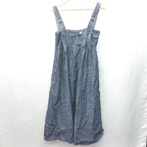 ¥468Yahoo!ショッピング◇ LOWRYS FARM ローリーズファーム デニム ギャザー カジュアル ロング丈 ワンピース サイズF ネイビー系 レディース E