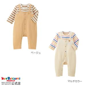 送料無料¥11,000Yahoo!ショッピングミキハウス ボーダー柄 重ね着風 カバーオール ベージュ マルチカラー 70cm 80cm ホットビスケッツ HOT BISCUITS