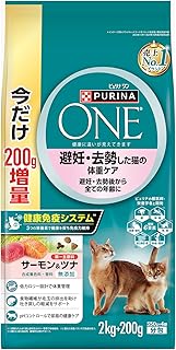 Amazonプライム¥1,999Amazon新生活Finalセールピュリナワン キャットフード ドライ 避妊・去勢した猫の体重ケア 子ねこから全ての年齢に サーモン&ツナ 2kg+200g 増量パック(550gx4袋入)