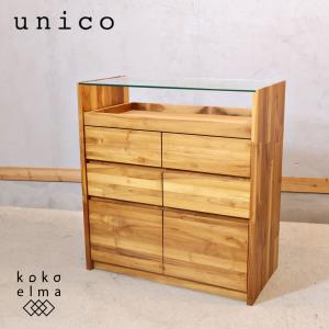 ¥55,000Yahoo!ショッピングunico ウニコ BREATH ブレス チーク無垢材 コレクションチェスト ショーケース ローチェスト ナチュラル 北欧スタイル 店舗什器 FD333