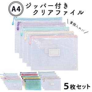 送料無料¥1,380Yahoo!ショッピングジッパーファイル 5色セット A4対応 クリアファイル 大容量 防水 書類 収納 メッシュポーチ レシート 領収書 宿題 半透明 学習用 仕事用