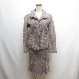 ¥4,000Yahoo!ショッピングイネド INED ウール ツイード スーツ セットアップ ジャケット スカート 11/9 ピンク系 厚手 フリンジ 裏地付き 日本製 レディース