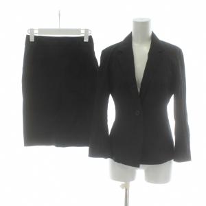 ¥2,800Yahoo!ショッピングイネド スーツ セットアップ 上下 テーラードジャケット シングル 背抜き ストライプ タイトスカート ひざ丈 ウール 7 S 黒 ブラック