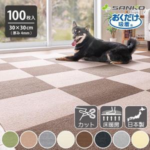 送料別¥24,926楽天市場タイルカーペット 30×30cm/厚み4mm ジョイントマット マット ラグ 洗える 撥水 置くだけ 吸着 ズレない 床暖房対応 子供 ペット フローリング 犬 イヌ ワンちゃん 猫 ネコ ネコちゃん 滑らない 負担軽減 同色100枚入 サンコー