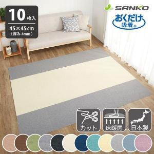 送料別¥6,600楽天市場タイルカーペット 45×45cm 10枚入 厚み4mm ジョイントマット マット ラグ 洗える 撥水 置くだけ 吸着 ズレない 床暖房対応 子供 ペット 犬 イヌ 猫 ネコ 負担軽減 おくだけタイルマット サンコー