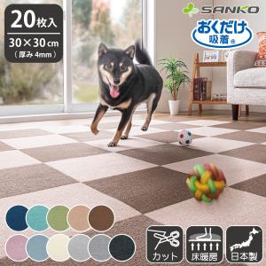 送料別¥4,980楽天市場タイルカーペット 30×30cm 同色20枚入 厚み4mm ジョイントマット マット ラグ 洗える 撥水 置くだけ 吸着 ズレない 床暖房対応 子供 ペット フローリング 犬 イヌ ワンちゃん 猫 ネコ ネコちゃん 滑らない 負担軽減 サンコー