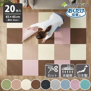 送料別¥9,180楽天市場タイルカーペット 45×45cm 20枚入 厚み4mm ジョイントマット マット 洗える 撥水 置くだけ 吸着 ズレない 床暖房対応 子供 ペット 滑らない 負担軽減 おくだけタイルマット 45cm角 大判 おくだけ吸着 サンコー