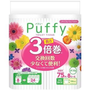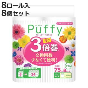 送料無料¥7,480Yahoo!ショッピングトイレットペーパー エリエール パフィー 8個セット 3倍巻き 64ロール入り ( ダブル 長持ち トイレ 無香料 1ロール75m 106mm ミシン目入り 大容量 備蓄 )