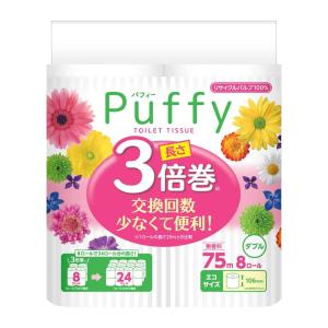 送料別¥1,080楽天市場トイレットペーパー エリエール パフィー 3倍巻き 8ロール入り ( ダブル 長持ち トイレ 無香料 1ロール75m 106mm ミシン目入り トイレットロール 無地 白 自宅 家庭用 省スペース 収納 防災 備蓄 ストック 介護 交換頻度 少ない )【39ショップ】