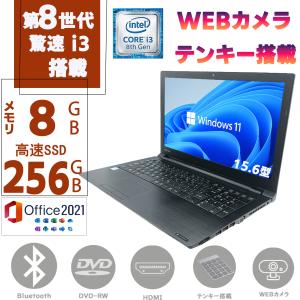 送料無料¥24,990Yahoo!ショッピングノートパソコン ノートPC 第八世代Corei3 メモリ8GB SSD256GB Win11 MSOffice2021 東芝 Dynabook B65 / B55 15.6型 DVD-ROM テンキ 無線