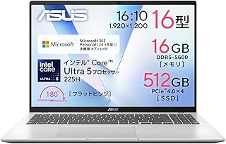 Amazonプライム¥124,800Amazon新生活Finalセール【Amazon.co.jp限定】 ASUS ノートパソコン ASUS Vivobook 16 X1607CA 16インチ インテル Core Ultra 5 225H メモリ16GB SSD 512GB Microsoft 365 Personal (24ヶ月版) 搭載 Windows 11 バッテリー駆動 9.3時間 Webカメラ内蔵 クールシルバー X1607CA-U5165SISAM