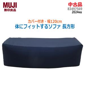 送料無料¥12,800Yahoo!ショッピング中古 良品 無印良品 体にフィットするソファ長方形 カバー付き 幅120cm 83497569 ネイビー 2024年製 1〜2人用 ビーズクッション