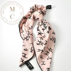送料無料¥52,800Yahoo!ショッピングシャネル CHANEL ヘアアクセサリー ピンク ブラック ココマーク リボン スカーフ シュシュ ヘアゴム