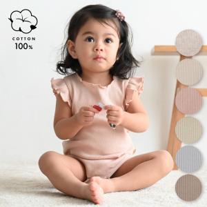 ¥890Yahoo!ショッピングPUPPAPUPO 肩フリル ノースリーブ ロンパース テレコ 綿100% 無地 シンプル ニューボーン ベビー カバーオール 春 夏 70 80 ベビー服 女の子 半袖 プッパプーポ