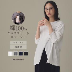 送料無料¥3,990Yahoo!ショッピングマタニティ トップス カットソー 長袖 授乳服 綿100% クロススリットカットソー 妊婦 服 長そで Tシャツ ブラック ホワイト 白 黒 紺 エンジェリーベ