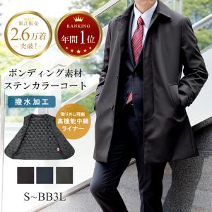 送料無料¥11,800楽天市場ステンカラーコート メンズ コート ボンディング素材 無地 中綿ライナー(取り外し可能)撥水加工 ブラック グレー ダークネイビー S M L LL 3L BB体 ビジネスコート スプリングコート