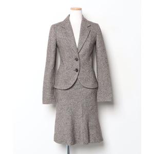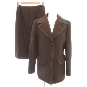 ¥4,300Yahoo!ショッピングアンタイトル UNTITLED 美品 スーツ ジャケット タイトスカート ウール 9 茶 ブラウン 幾何学模様 パイピング 長袖 ひざ丈 /SJ ■GY60 レデ