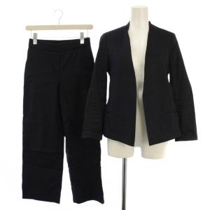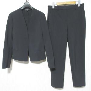送料無料¥24,100Yahoo!ショッピング美品 Theory セオリー SETTLE ストレッチ ノーカラージャケット パンツ スーツ セットアップ 01-1104118/01-9306458 2 ブラック レディース 古着 中古