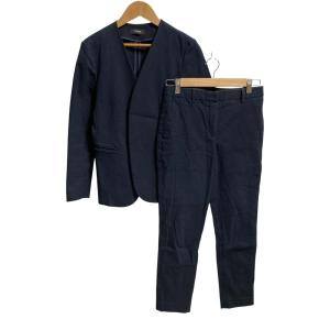 送料無料¥10,240Yahoo!ショッピング良品 Theory セオリー STRETCH CANVAS ノーカラージャケット パンツ スーツ セットアップ サイズ上4 下00 ネイビー レディース 古着 中古