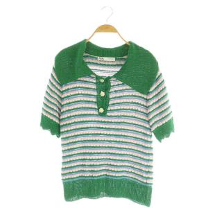 ¥1,600Yahoo!ショッピングザラ ZARA JEWEL BUTTON KNIT POLO ニットポロシャツ 半袖 ボーダー USA M グリーン /MY ■OS レディース
