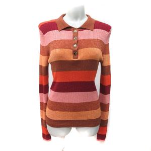 送料別¥1,480楽天お買い物マラソン【全品ポイント10倍|開催中|〜4/10(金)01:59まで\4月お買い物マラソン/100円〜2,000円OFFクーポン配布中】【中古】ザラ ZARA スキッパー リブカットソー ポロシャツ 半袖 ボーダー ストレッチ 胸ポケット ポリ100% M ワインレッド×青×黄×白 レディース