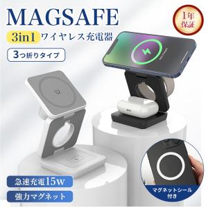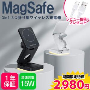 送料無料¥2,480Yahoo!ショッピング【10台限定セール】ワイヤレス充電器 magsafe充電器 マグセーフ iPhone マグネット式 スタンド 3in1 15w AirPods Apple Watch 対応 3つ折り 置くだけ