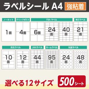 送料無料¥4,880Yahoo!ショッピングラベルシール A4 1面 4面 6面 10面 12面 21面 24面 40面 44面 95面 FBA 対応 500シート 強粘着 ノーカット 宛名 配送 ラベル シール