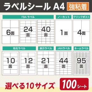 送料無料¥1,080Yahoo!ショッピングラベルシール A4 1面 4面 6面 10面 12面 21面 24面 40面 44面 95面 FBA 対応 100シート 強粘着 ノーカット 宛名 配送 ラベル シール