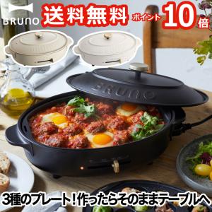 送料無料¥18,700楽天お買い物マラソンブルーノ ホットプレート おしゃれ BRUNO crassy+ オーバルホットプレート 蓋付き プレート3種セット 深鍋 たこ焼きプレート 平面プレート付き トレイ付き 焼肉 コンパクト 電気プレート キッチン家電 北欧風 結婚祝い 新生活 プレゼント ギフト 【選べる特典付】