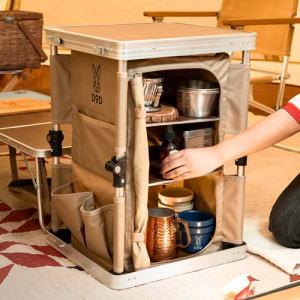送料無料¥9,900Yahoo!ショッピングDOD 収納棚 ラック 折りたたみ式 ソロキャンプ 荷物整理 サブテーブル ドリンクステーション ハード天板 ハード棚板 棚数調整 ココニモラック TB1-071-TN タン