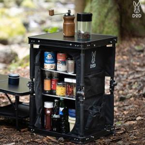 送料無料¥9,900Yahoo!ショッピングDOD 収納棚 ラック 折りたたみ式 ソロキャンプ 荷物整理 サブテーブル ドリンクステーション ハード天板 ハード棚板 棚数調整 ココニモラック TB1-071-BK