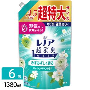 送料無料¥5,980Yahoo!ショッピングP&G レノア 超消臭1WEEK 柔軟剤 みずみずしく香るフレッシュグリーンの香り 詰め替え 超特大 1380mL×6袋 4987176312761