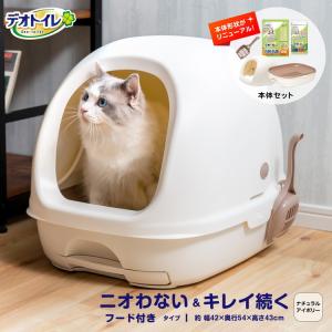 送料無料¥2,980Yahoo!ショッピング猫トイレ デオトイレ フード付き本体セット アイボリー ニオイ菌99.9%抑制 ゆったり 飛び散り防止 清潔 抗菌 シンプル 猫用トイレ 猫砂 ユニ・チャーム
