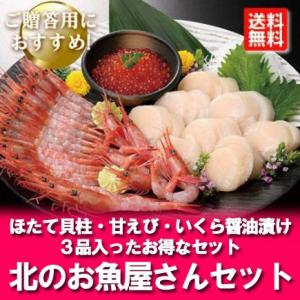 送料無料¥7,380Yahoo!ショッピング海鮮詰め合わせ 送料無料 海鮮セット 北のお魚屋さんセット ( 甘エビ / ホタテ貝柱 / いくら 醤油漬け ) 海鮮 セット 魚介類 海産物 貝類 魚卵