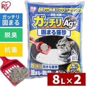 送料無料¥1,480Yahoo!ショッピング猫砂 鉱物系 アイリスオーヤマ まとめ買い ベントナイト 抗菌 銀イオン 脱臭 固まる猫砂 8L 2袋セット GN-8