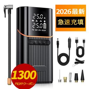 Amazonプライム¥2,675Amazon新生活Finalセール自転車 空気入れ 電動 電動空気入れ バイク 車 用 コードレス 6000mAh 大容量バッテリー 仏/英/米式バルブ対応 自動停止 低騒音 エアポンプ