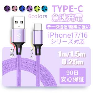 送料無料¥388Yahoo!ショッピングタイプC ケーブル USBケーブル USB Type-C 充電ケーブル Cタイプ iPhone16 USBーC 充電器 急速 USBC TypeC スマホ 携帯 0.25/1/1.5m