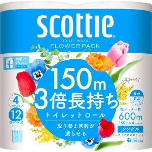 送料無料¥1,000Yahoo!ショッピングトイレットペーパー ダブル シングル 3倍 スコッティ フラワーパック 3倍長持ち ちり紙 長巻き トイレット4ロール 75m 150m ポイント消化